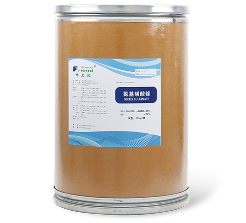 氨基磺酸鎳溶液(Nickel Sulfamate Solution) 分 子式:Ni(NH2SO3)2 分子量:250.87 性  狀:深綠色透明液體。 用 途:主要用于精密電鍍、電鑄、電子工業(yè)等。 包 裝:HDPE桶裝,每桶30公斤。 儲 運:運輸時包裝要密封,運輸過程中防止受熱,貯存在陰涼,通風處。